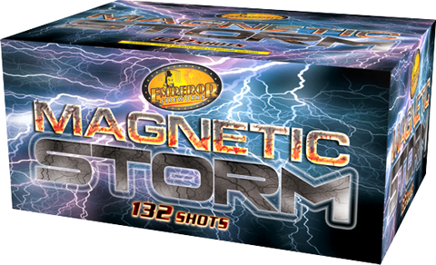 Magnetic Storm is an electrifying Firework with 15 Stunning Effects. Ruby Red Comets into Red Coconut with Blue Stars, Green Comets to Purple & Green Peony Bursts, Blue Comets to Lemon Yellow and Blue Stars, 3 x 'C' Shape Fans of Red, Green & Blue Comets Exploding into Red, Green & Blue Stars with Timed Rain, followed by a series of Red/Green/White Glittering Tailed Comets, 3 x 'W' Shape Effects of Red Comets to Red Stars with Silver Glitter, Blue Comets with Falling Leaves, Green Comet to Green Stars with Silver Glitter, Red Comets into Blue Stars with White Glitter, Green Comets to Silver Crackling Coconut and a Finale Volley of Blue Comets Exploding into Blue Stars with Time Rain.