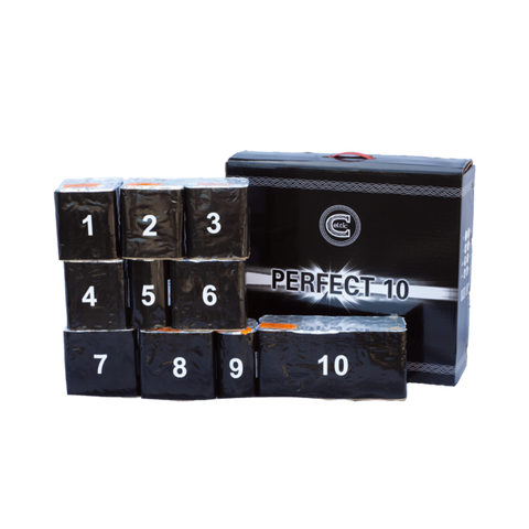 Celtic 10 Pack has a great selection of 10 fireworks with mixed effects from different size tubes.