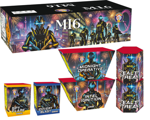 Pack of 6 Barrages Two fanned fireworks and 4 straight firing fireworks all with multi effects.