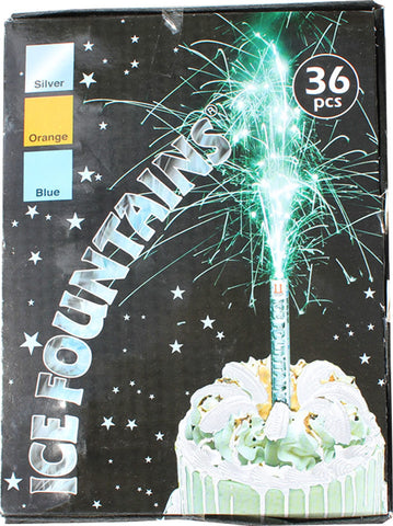 These Premium quality Candles have appx 1 minute burn time with no debris Ice fountains Ice Candles are great for wine bars, restaurants and other such venues, and remember these are safe for indoor use unlike sparklers etc. We also sell bottle holders for attaching 3 ice fountains at once (see separate listing) We also sell ice fountains in different quantities again see separate listing. Whether it is for a birthday party, an anniversary, whatever occasion these classy Ice Fountains really do look the part. Our Ice Fountains are the alternative to the traditional birthday candle.