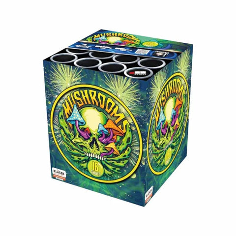 The "Mushroom" or "Houbicky" firework by Klasek Pyrotechnics is a captivating spectacle that delivers 16 shots of dazzling brilliance. With a 25mm bore, this firework ascends straight up, trailing whistling tails. As the night sky is illuminated, vibrant starburst patterns burst, accompanied by the shimmering beauty of golden brocades. What sets this firework apart is its versatility, as it presents four distinct effects that captivate the audience. "Mushroom" firework has a resounding and attention-grabbing loud reports that leave a lasting impression.