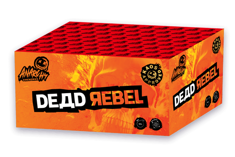 Dead Rebel by Anarchy Fireworks is a 506 shot- 505g of powder, Long-lasting defiance—Dead Rebel shoots with steady fury of golden tails in a V shape, throwing up fireballs and sparks in true outlaw style.