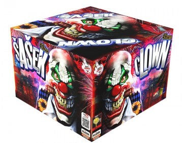 Sasek is a 49 shot x 20mm barrage with 7 different effects of beautiful gold glittering crowns, purple wave and silver strobe, green coconuts and gold glitter, gold kamuro and silver strobe, red wave and crackling and orange and crackling. Seven different effects in total.