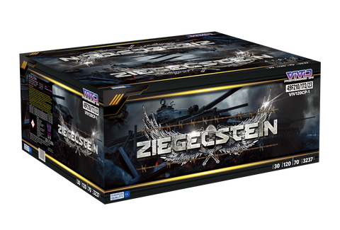 Ziegelstein is a 120 shot x 30mm bore compound firework firework with a spectacular display of lights and colours. It begins with dazzling golden brocade mine lifts, leading to massive golden brocades that gracefully linger in the night sky, accompanied by sparkling silver strobes arranged in a captivating z-firing pattern. This breath-taking show continues with powerful volleys of 10 shots at a time. The sequence repeats, but this time with vibrant red and green stars, creating a mesmerizing visual spectacle. Swirling comets add an extra touch of magic, paving the way for the grand finale with shower of huge golden brocades that gracefully fill the sky, resembling a radiant rain shower of light and beauty.