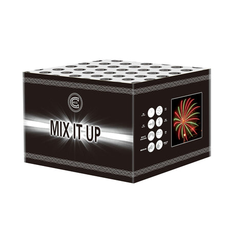 Mix It Up. This 63 Shot, Blue tail to blue peony, gold tail to gold flashing, green tail to green peony, white tail to white flashing, red tail to red peony, gold tail to brocade coconut chrysanthemum, white tail to white flashing, gold tail to brocade coconut chrysanthemum